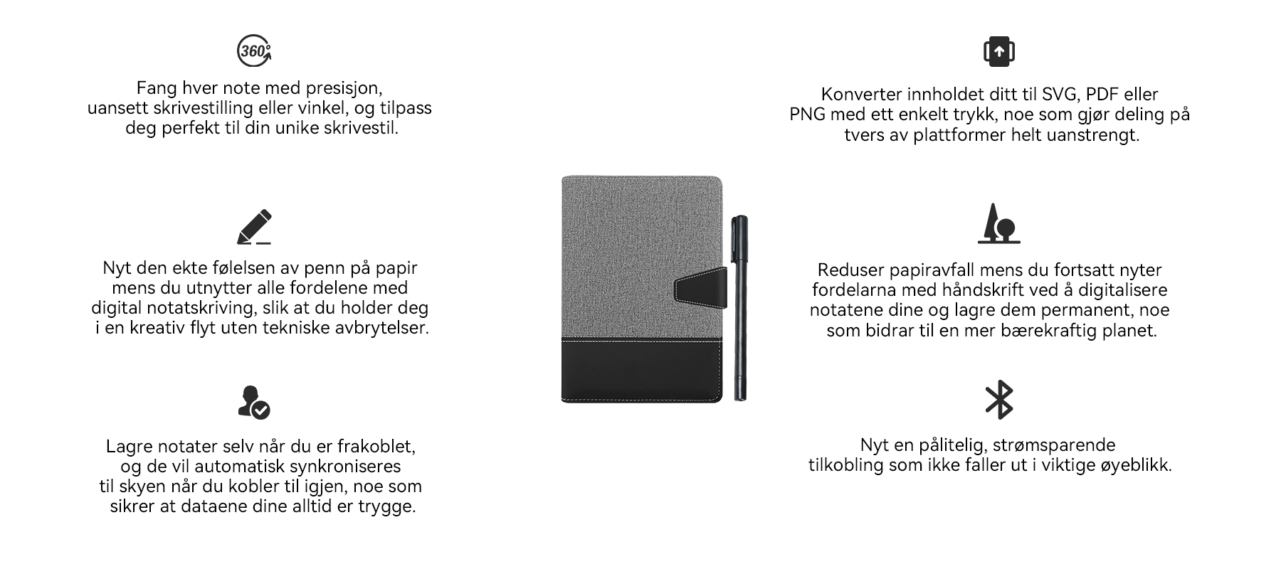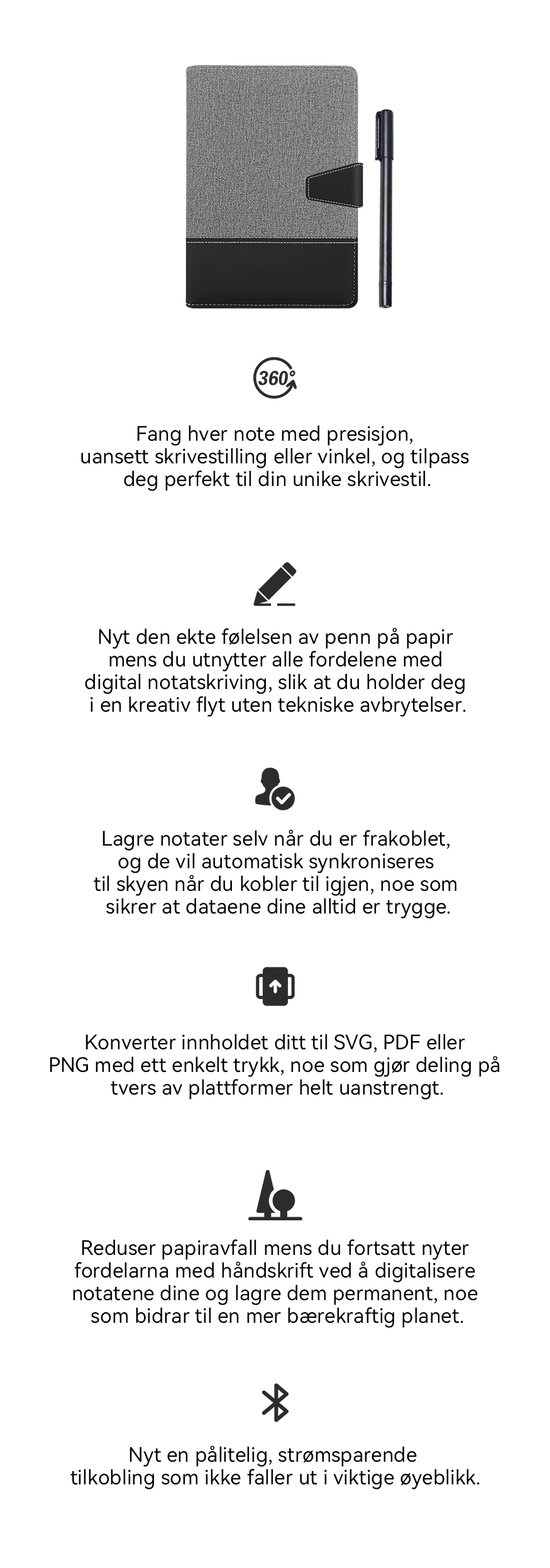 - Miljøvennlig: Gjenbrukbar og bærekraftig – nyt skriveopplevelsen samtidig som du reduserer papiravfall.